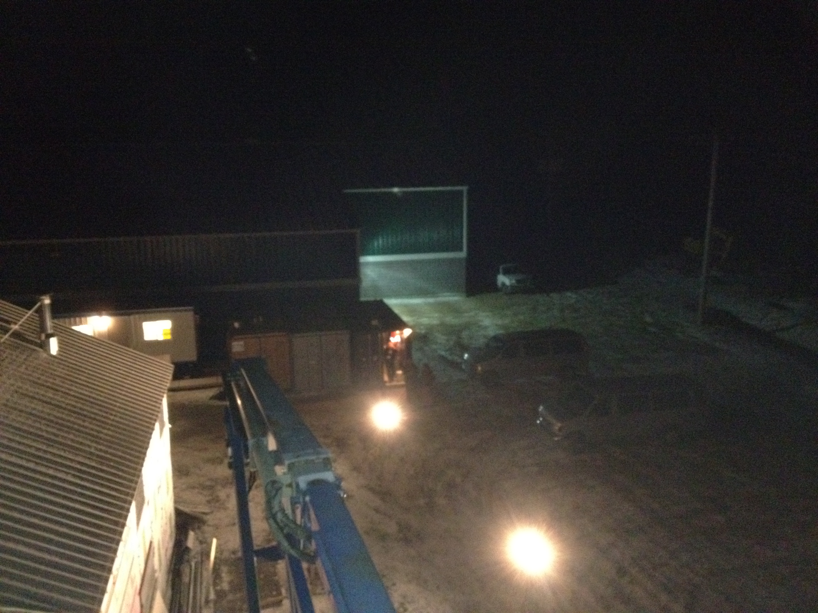 We would leave for Supper at 5pm, returning quickly to set up flood lights and do our best to remain productive. We would save certain procedures for the evening hours, in order to remain safe. Use of the lifts and machinery was limited, what work we could do at ground level, we saved for the evenings.